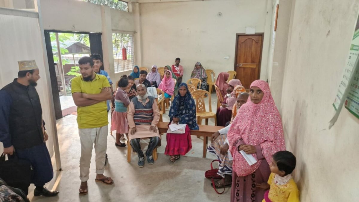 Op het terrein van de kliniek in Nothkana staat een rij patiënten voor de deur...