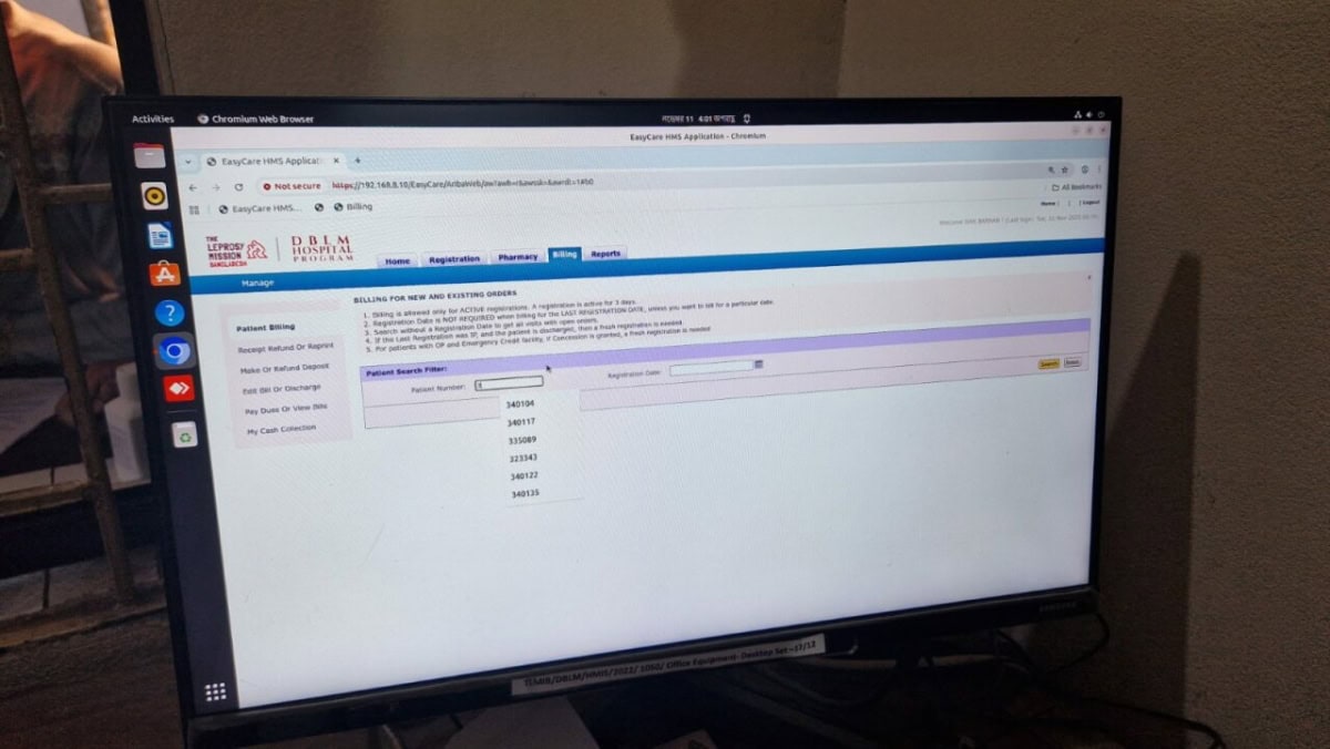 Elke dag ontvangen vijf artsen hier gemiddeld 120 patiënten, en na het weekend zelfs rond de 280. Wekelijks worden 2 à 3 nieuwe lepragevallen ontdekt – mensen die zonder deze kliniek vaak veel te laat de juiste zorg zouden krijgen. De artsen vertelden hoe blij ze zijn met hun werkplek. Ze kunnen hier zowel mensen met lepra behandelen als leren van andere dermatologische casussen in het ziekenhuis op hetzelfde terrein. Die combinatie houdt hun kennis scherp en hun motivatie groot. Ook het computersysteem, dat sinds 2023 draait, maakt een groot verschil. Het houdt nauwkeurig bij hoeveel patiënten worden geholpen, welke medicijnen op voorraad zijn en hoe de dagelijkse stroom aan mensen wordt geregistreerd. Hierdoor kan de kliniek sneller, efficiënter en zorgvuldiger werken — een stille kracht achter de schermen, maar van enorme waarde. We spraken een vrouw die samen met haar zus vanuit India was gereisd, puur om hier geholpen te worden. Ze had gehoord over de kwaliteit en betaalbaarheid van de zorg. Haar vertrouwen in deze kliniek – en haar bereidheid om dagen te reizen – onderstreept hoe bijzonder deze plek is.