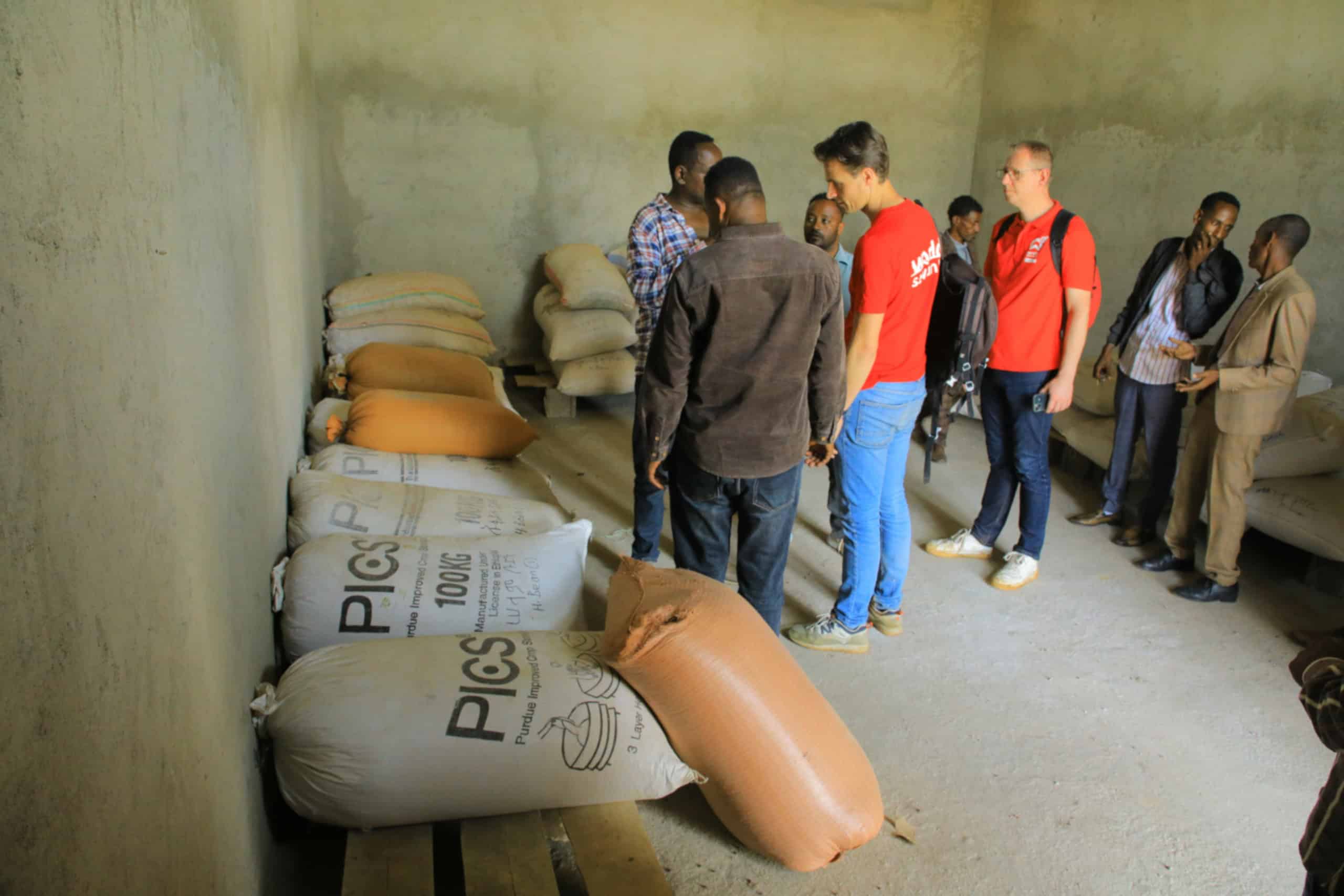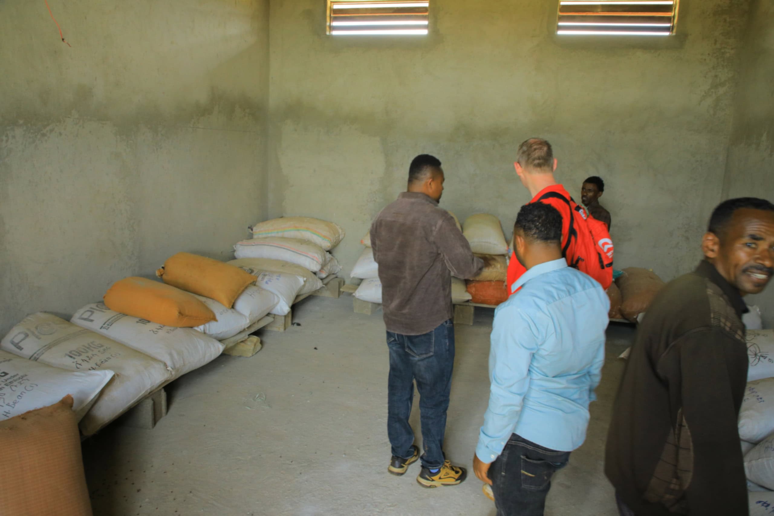 Het gebouw is inmiddels al in gebruik. In de opslagruimte liggen vijftig grote zakken met cassave, bonen en duivenerwten. Deze producten worden in het goedkope seizoen opgeslagen. De prijs is dan laag, waardoor de opbrengst beperkt is. Zodra het aanbod afneemt en de prijs stijgt, worden de goederen verkocht. Zo steeg de prijs van bonen bijvoorbeeld van 45 birr per kilo naar inmiddels 85 birr per kilo. De winst wordt deels uitgekeerd aan de leden en deels gebruikt voor trainingen of andere gezamenlijke investeringen.