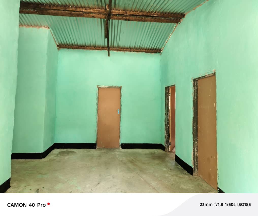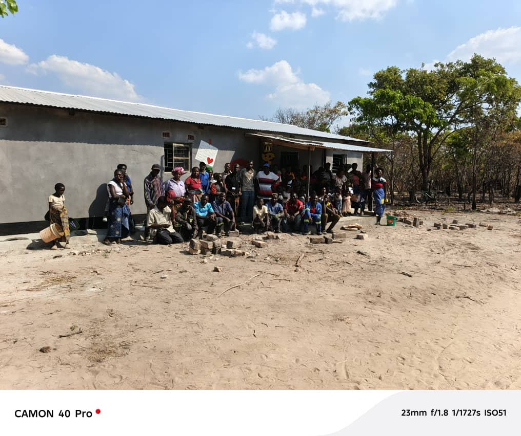 De laatste mintgroene verf, een prachtige Giraffe naast de ingang en de gemeenschap voor de deur, dit kan maar een ding betekenen. The project in Luanga is finished! Roept de trotse projectcoördinator Michael Tembo.